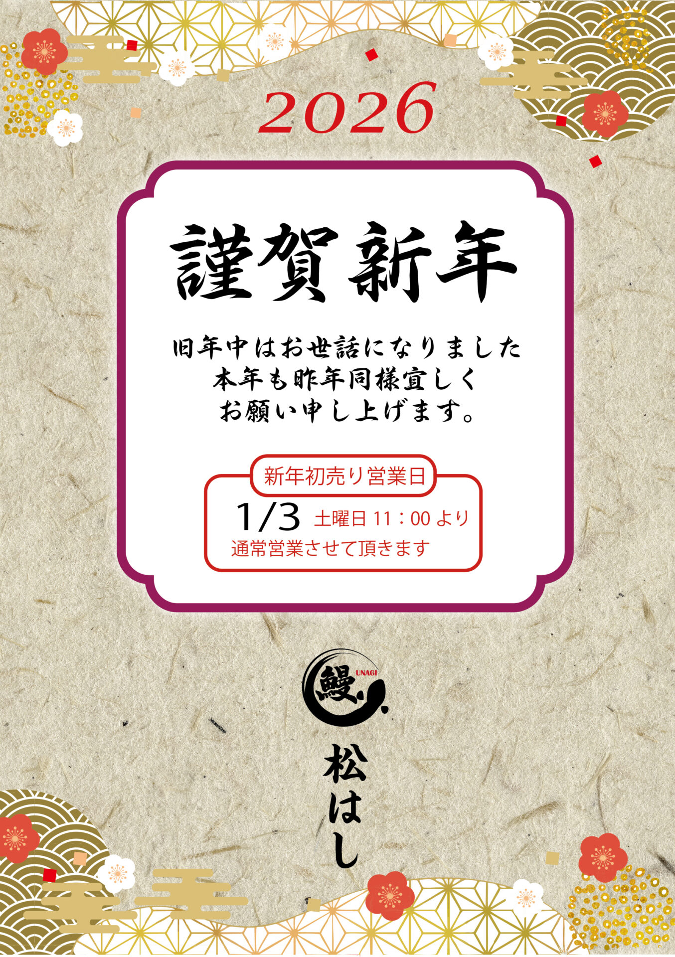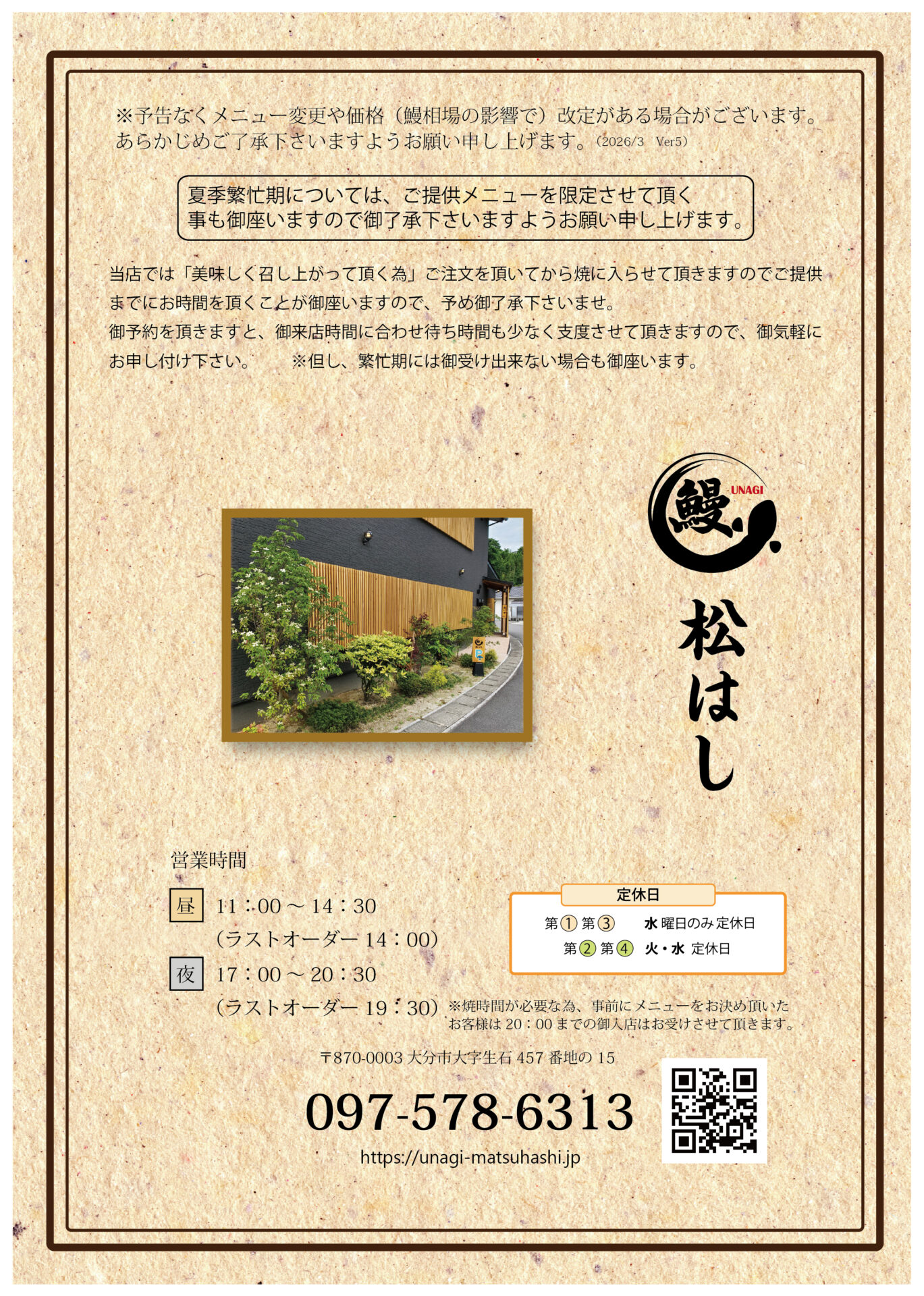 「鰻 松はし」 ホームページへ御来訪頂きありがとう御座います。