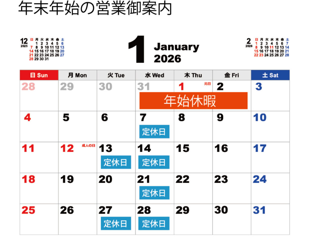 働き方改革の一環として「オフシーズン」定休日変更のお知らせ